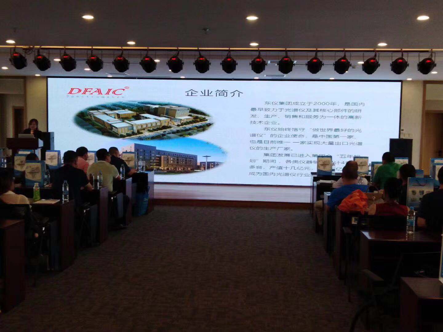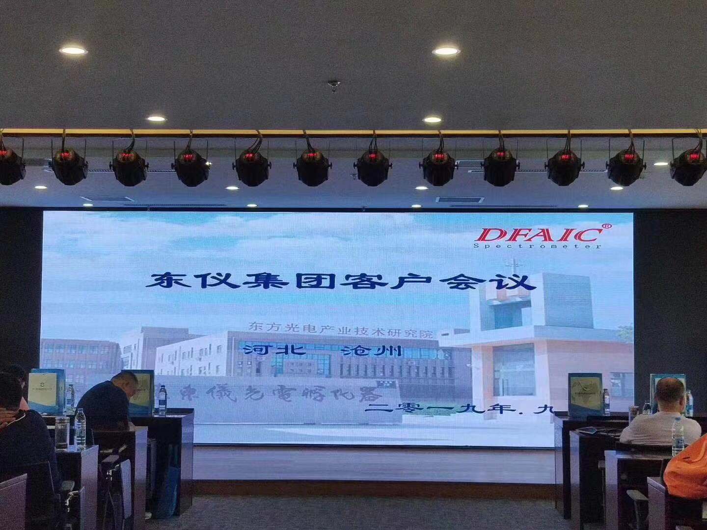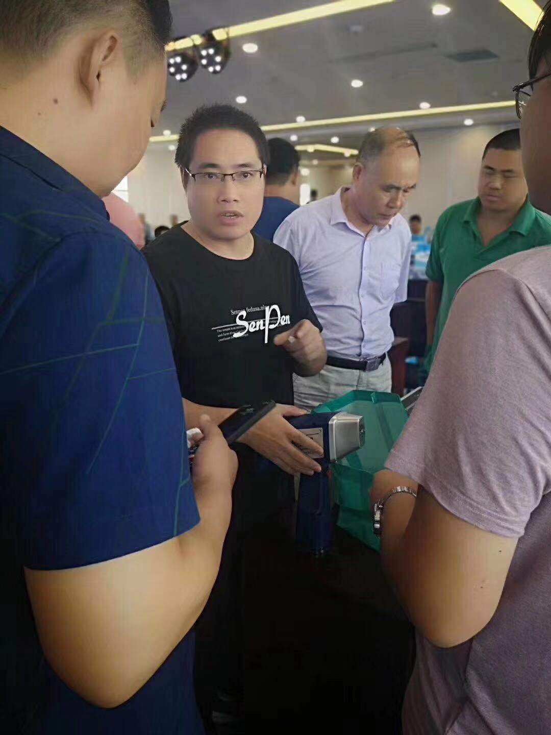 会议现场—-集团销售总监邹志禹为到访客户讲解东仪集团发展状况、集团规划以及针对市场动态东仪集团推出的各型号新品和新技术的进展。集团高级工程师为客户现场演示手持荧光光谱仪并针对光谱仪对与会人员进行了技术解答。