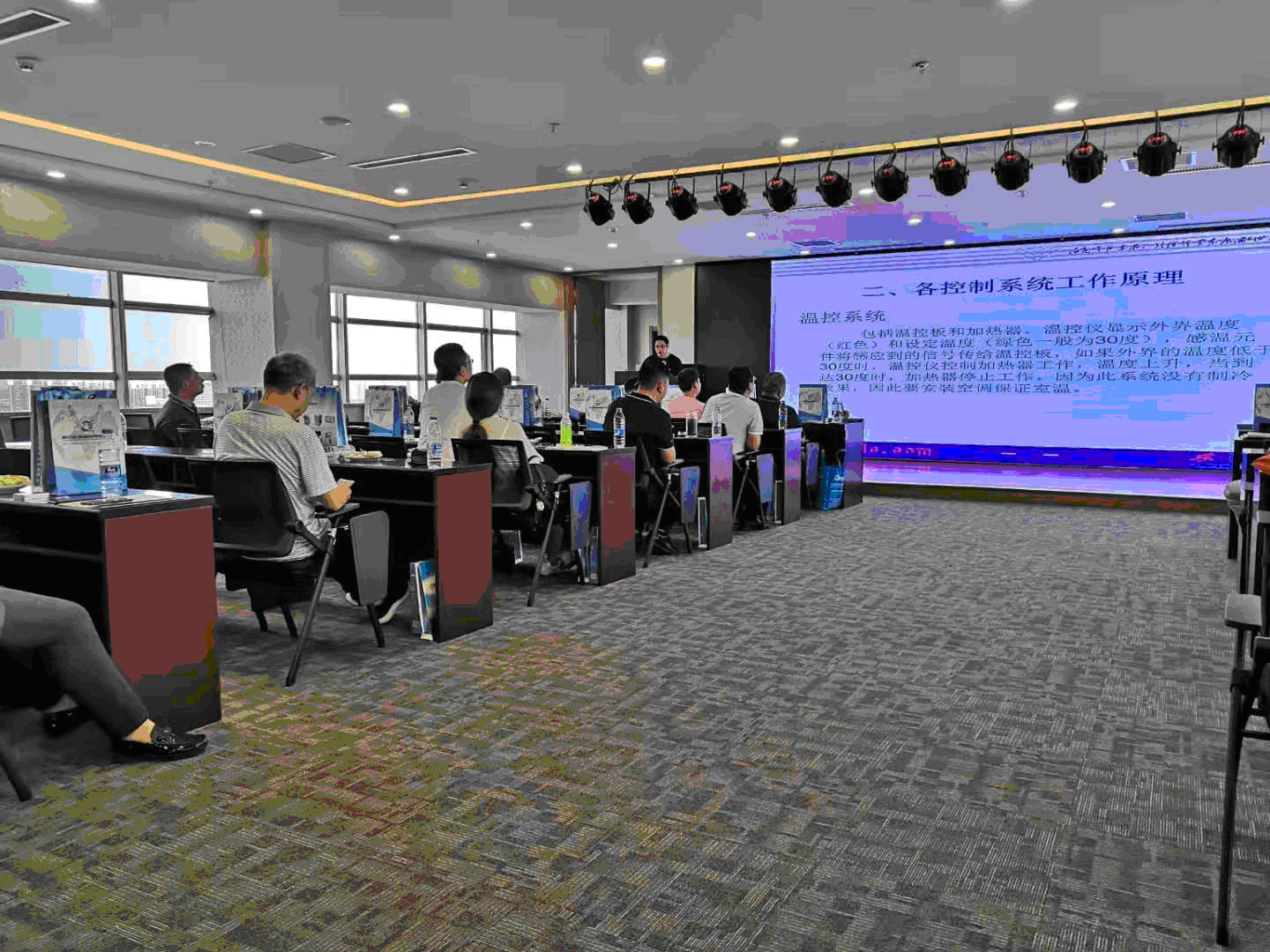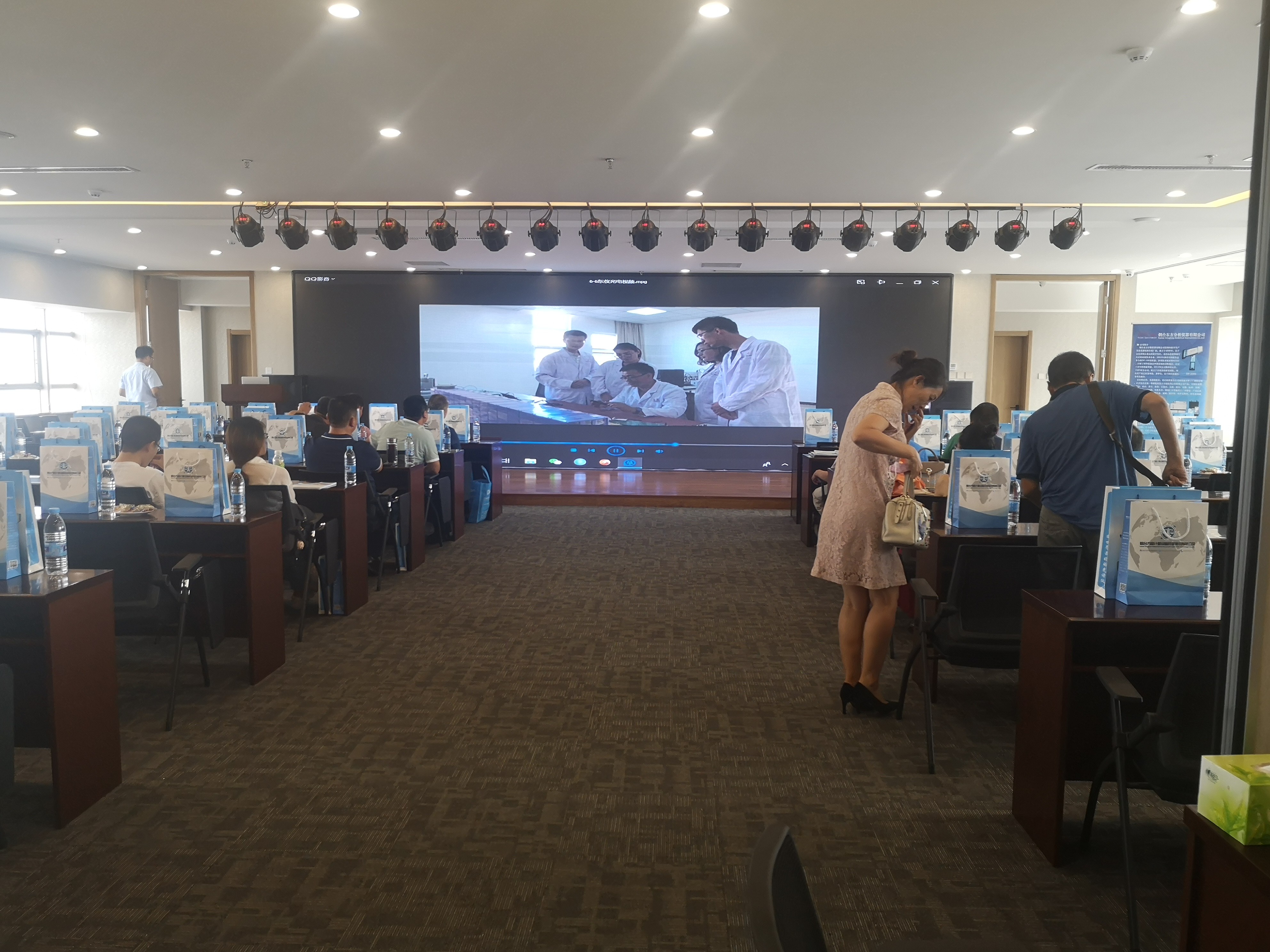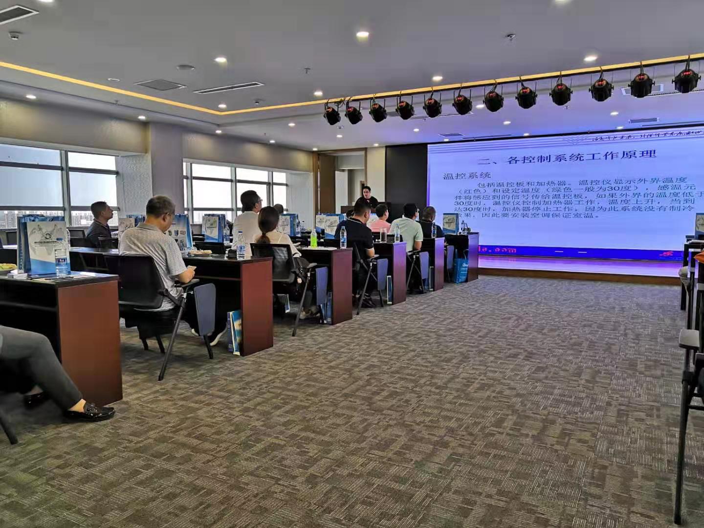会议现场—-集团销售总监邹志禹为到访客户讲解东仪集团发展状况、集团规划以及针对市场动态东仪集团推出的各型号新品和新技术的进展。集团高级工程师为客户现场演示手持荧光光谱仪并针对光谱仪对与会人员进行了技术解答。
