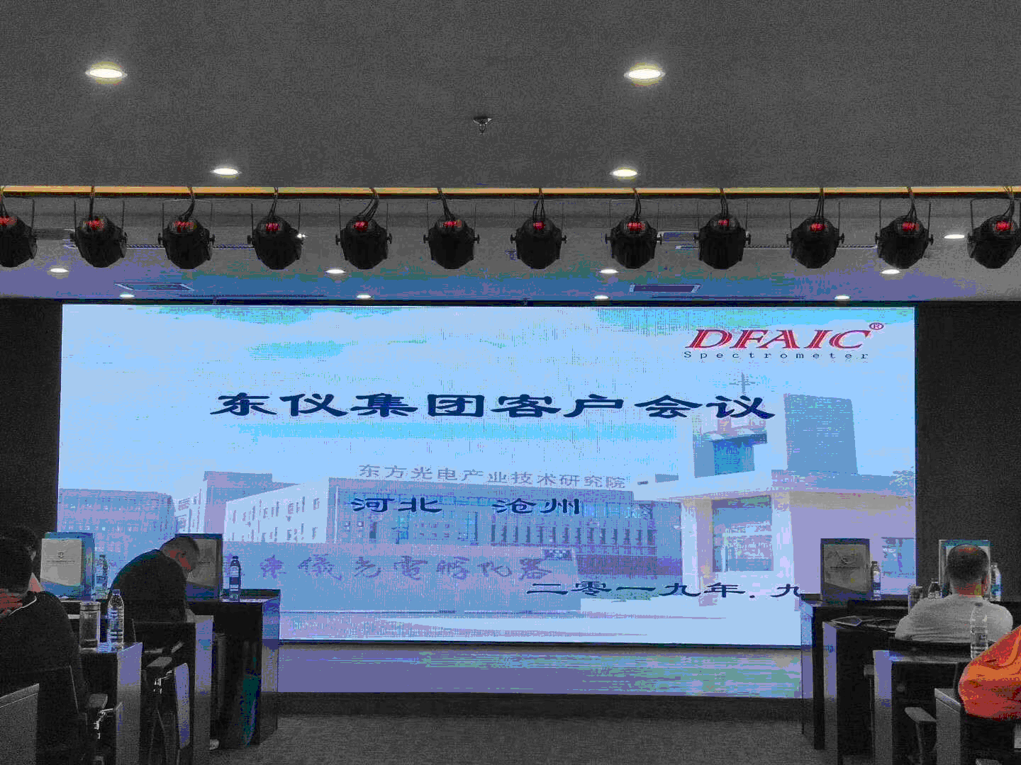 会议现场—-集团销售总监邹志禹为到访客户讲解东仪集团发展状况、集团规划以及针对市场动态东仪集团推出的各型号新品和新技术的进展。集团高级工程师为客户现场演示手持荧光光谱仪并针对光谱仪对与会人员进行了技术解答。